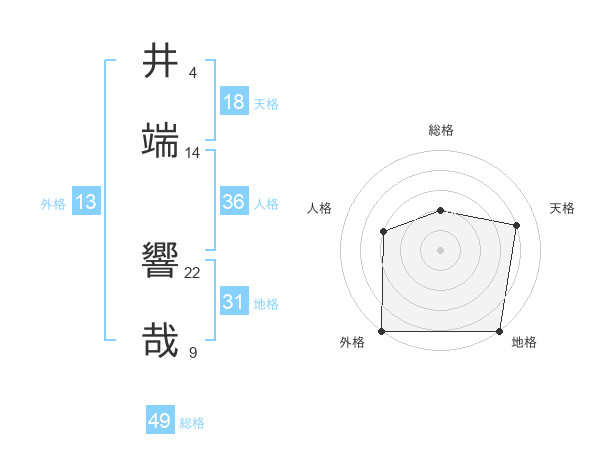井端 響哉さんの総格は49画の2点!