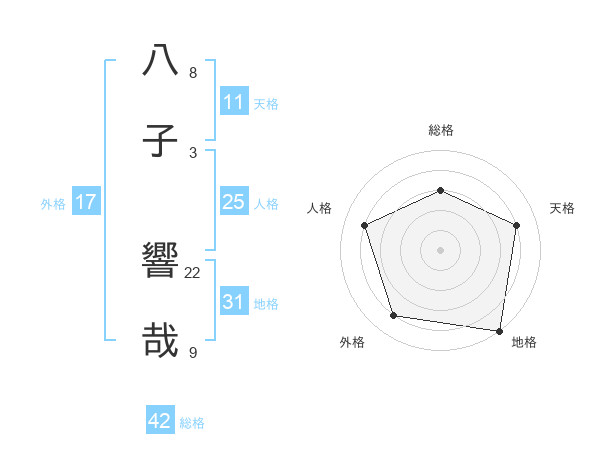 八子 響哉さんの総格は42画の3点!