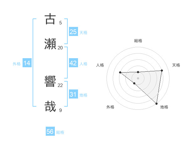 古瀬 響哉さんを姓名の画数から五運を鑑定