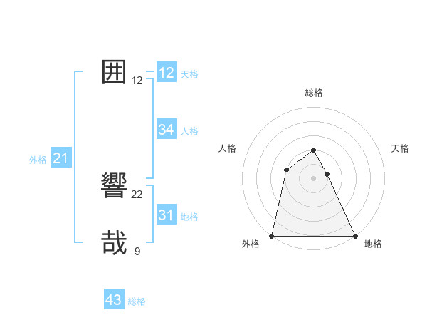 囲 響哉さんの外格は21画の5点!