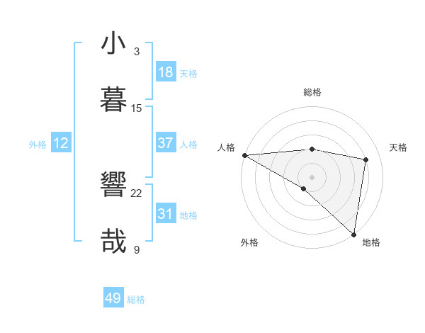 小暮 響哉さんを姓名の画数から五運を鑑定