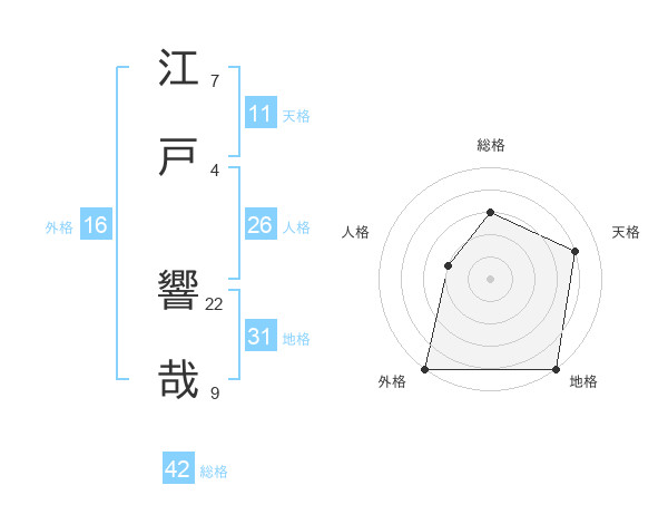 江戸 響哉さんの総格は42画の3点!