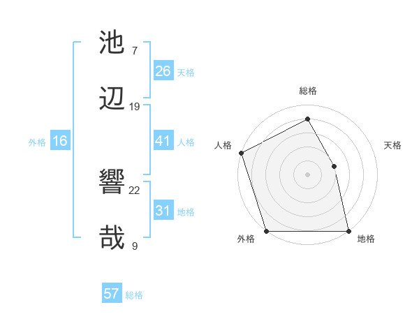 池辺 響哉さんの総格は57画の4点!