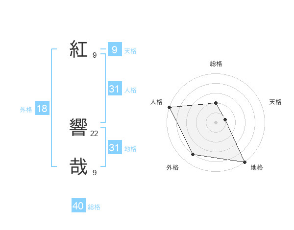 紅 響哉さんの地格は31画の5点!