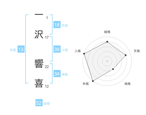 一沢 響喜さんを姓名の画数から五運を鑑定