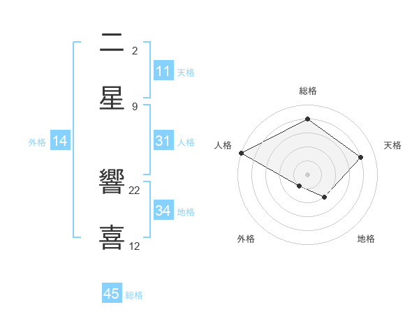 二星 響喜さんの総格は45画の4点!