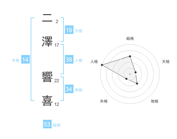 二澤 響喜さんを姓名の画数から五運を鑑定