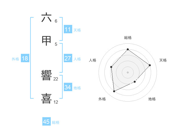 六甲 響喜さんの総格は45画の4点!