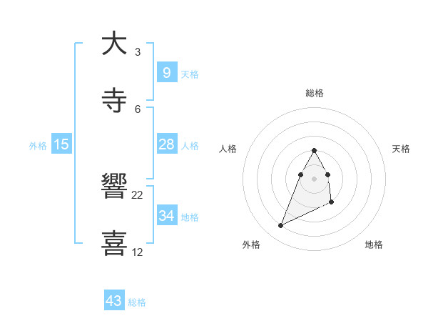 大寺 響喜さんを姓名の画数から五運を鑑定