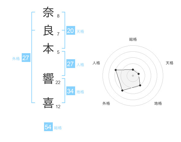 奈良本 響喜さんを姓名の画数から五運を鑑定