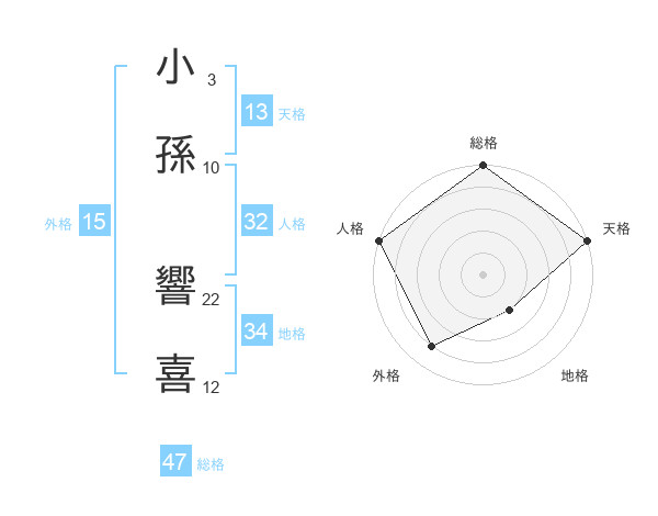小孫 響喜さんを姓名の画数から五運を鑑定