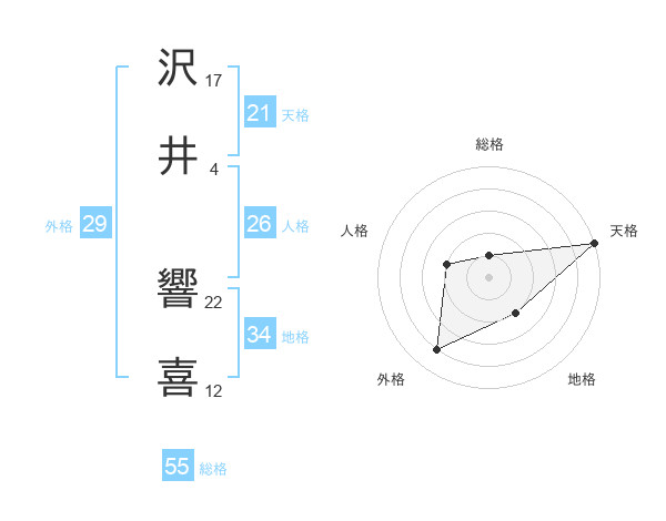沢井 響喜さんを姓名の画数から五運を鑑定