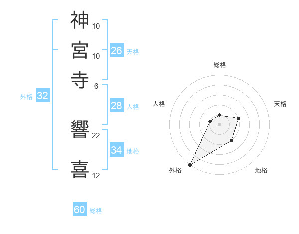 神宮寺 響喜さんの総格は60画の1点!