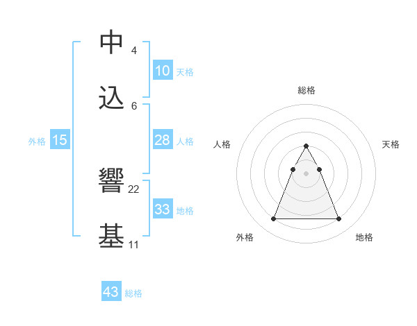 中込 響基さんの総格は43画の2点!