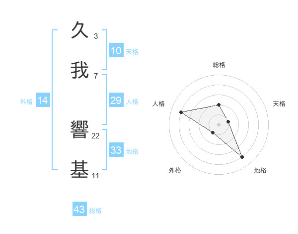 久我 響基さんの総格は43画の2点!