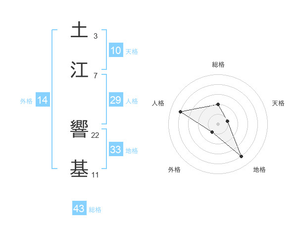 土江 響基さんの総格は43画の2点!