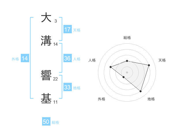 大溝 響基さんの総格は50画の2点!