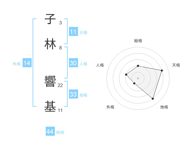 子林 響基さんの総格は44画の2点!