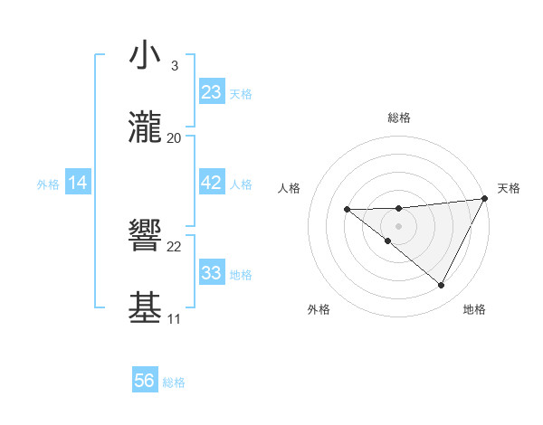 小瀧 響基さんの天格は23画の5点!