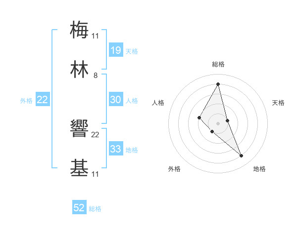 梅林 響基さんの総格は52画の4点!
