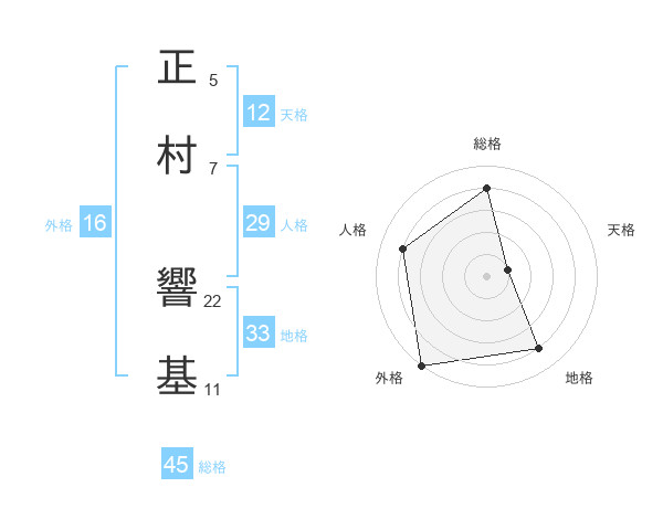 正村 響基さんを姓名の画数から五運を鑑定
