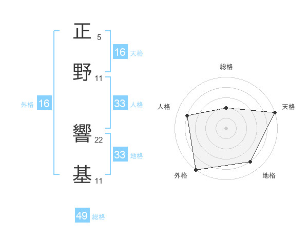 正野 響基さんの地格は33画の4点!