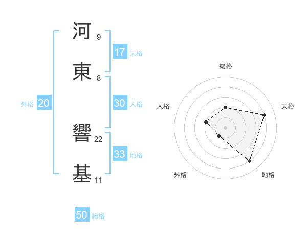 河東 響基さんの天格は17画の4点!