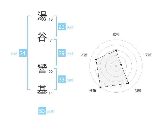 湯谷 響基さんを姓名の画数から五運を鑑定