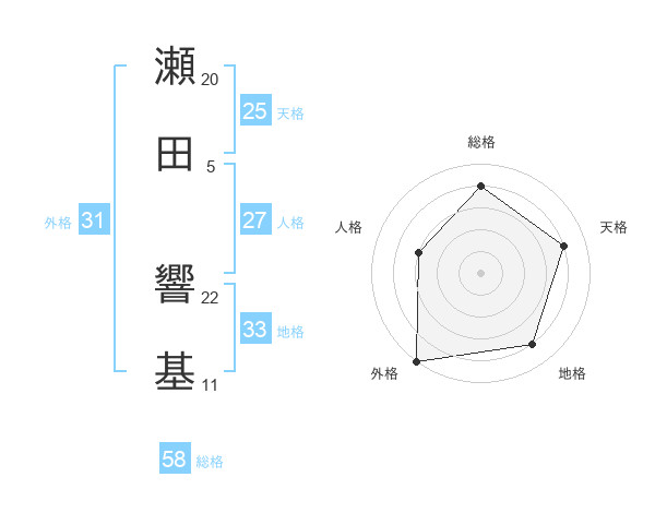 瀬田 響基さんを姓名の画数から五運を鑑定