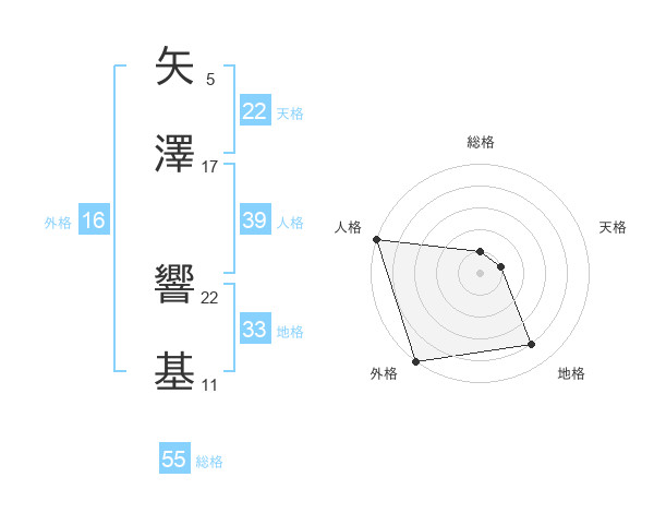 矢澤 響基さんの天格は22画の1点!