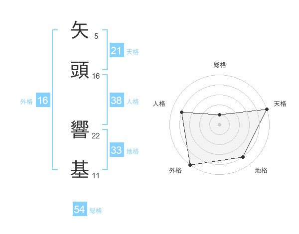 矢頭 響基さんの総格は54画の1点!