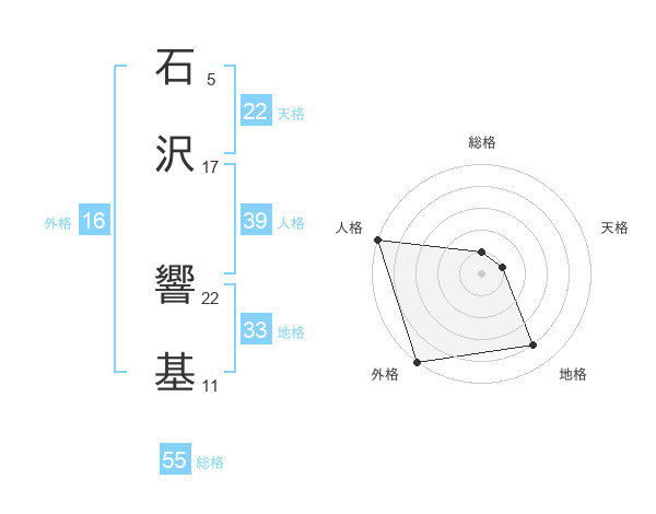 石沢 響基さんの総格は55画の1点!