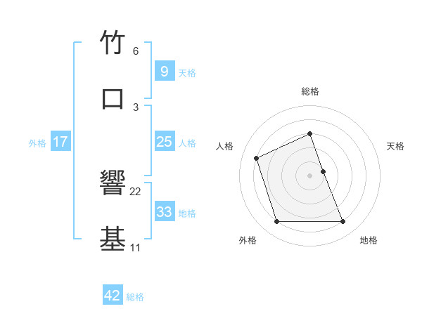 竹口 響基さんを姓名の画数から五運を鑑定