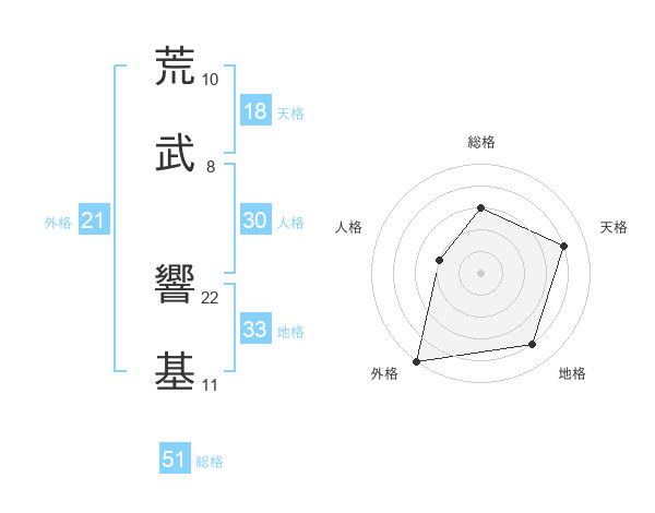 荒武 響基さんの総格は51画の3点!