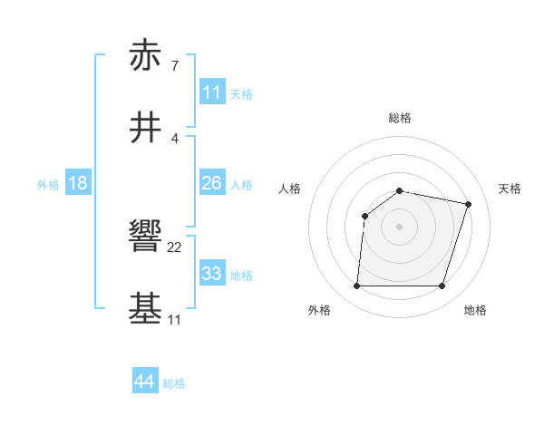 赤井 響基さんの総格は44画の2点!