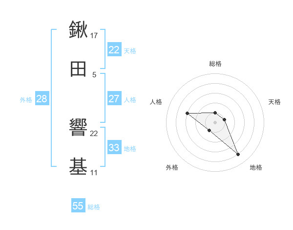 鍬田 響基さんを姓名の画数から五運を鑑定