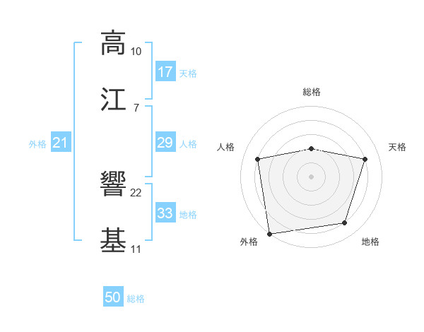 高江 響基さんの総格は50画の2点!