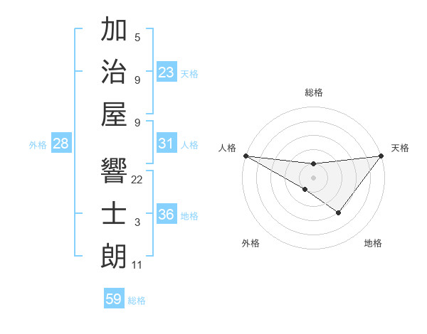 加治屋 響士朗さんを姓名の画数から五運を鑑定