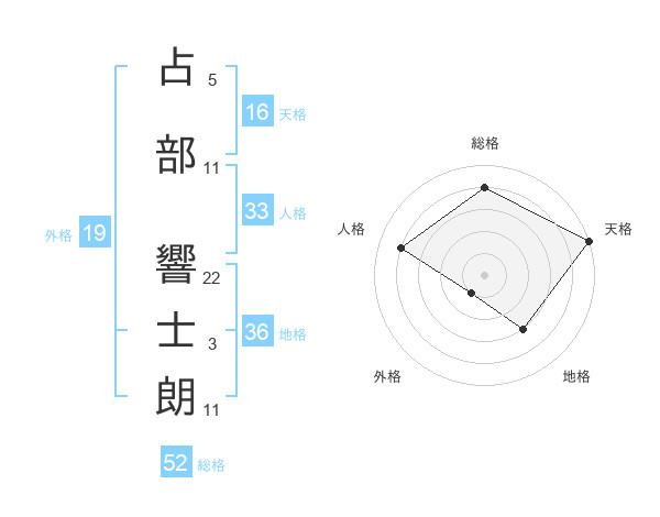 占部 響士朗さんを姓名の画数から五運を鑑定