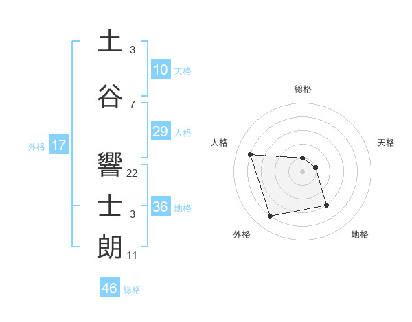 土谷 響士朗さんを姓名の画数から五運を鑑定