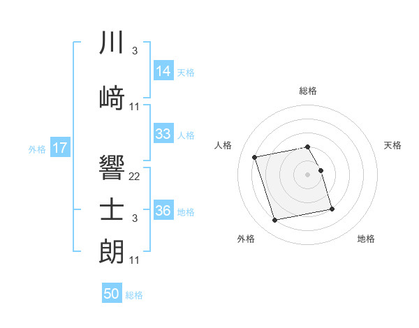 川﨑 響士朗さんを姓名の画数から五運を鑑定