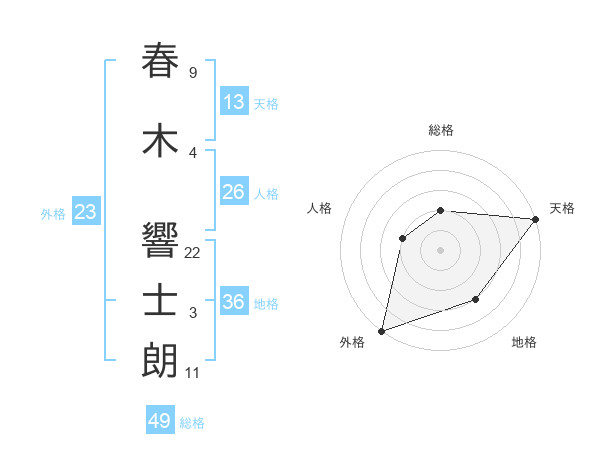 春木 響士朗さんを姓名の画数から五運を鑑定