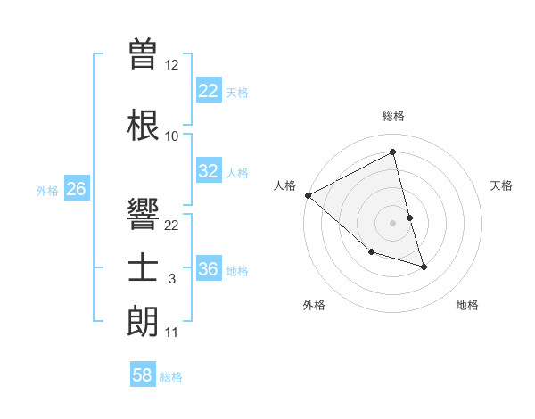 曽根 響士朗さんの総格は58画の4点