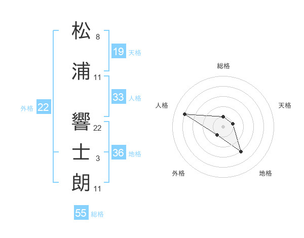 松浦 響士朗さんの総格は55画の1点!