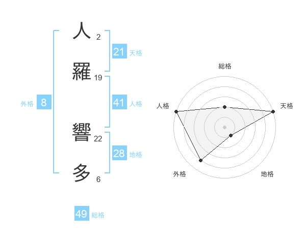 人羅 響多さんの天格は21画の5点!
