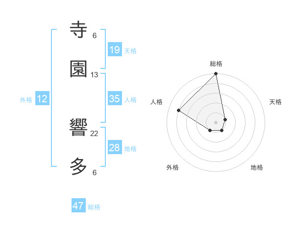 寺園 響多さんの総格は47画の5点!