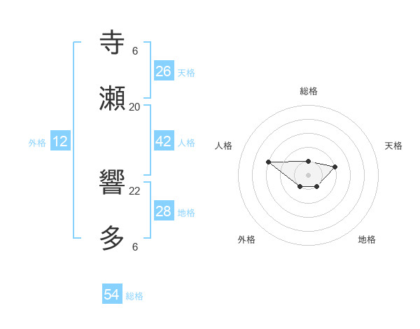 寺瀬 響多さんの総格は54画の1点!