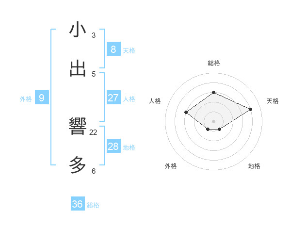 小出 響多さんの総格は36画の3点!