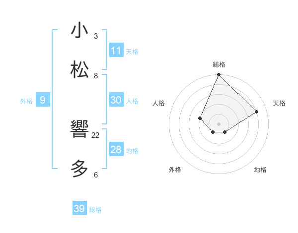 小松 響多さんの総格は39画の5点!