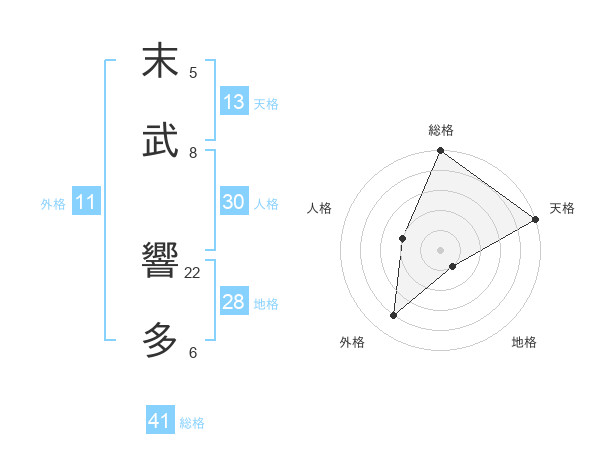 末武 響多さんの総格は41画の5点!